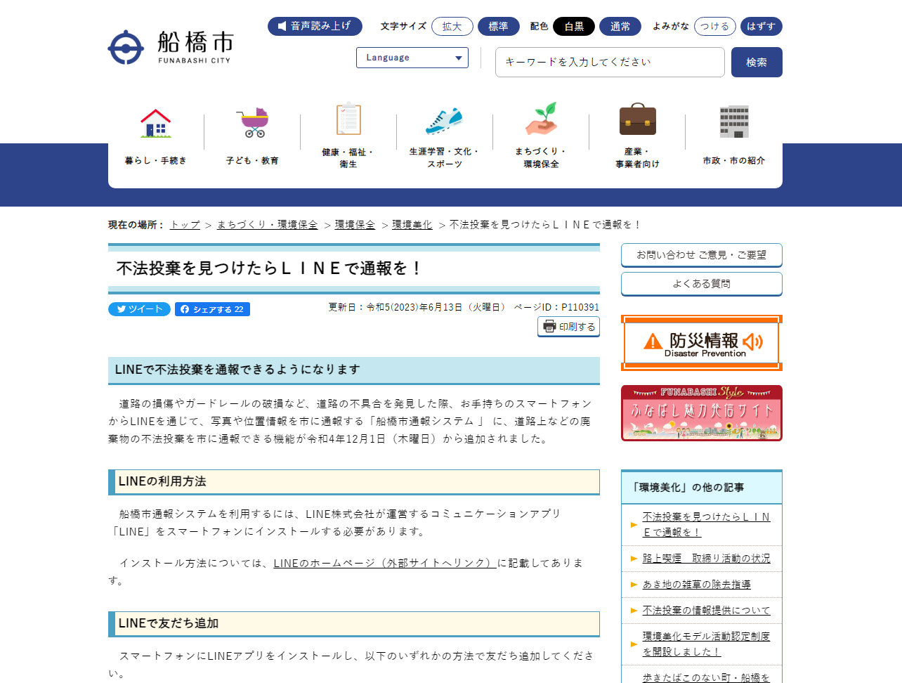 参考リンク:不法投棄を見つけたらLINEで通報を!